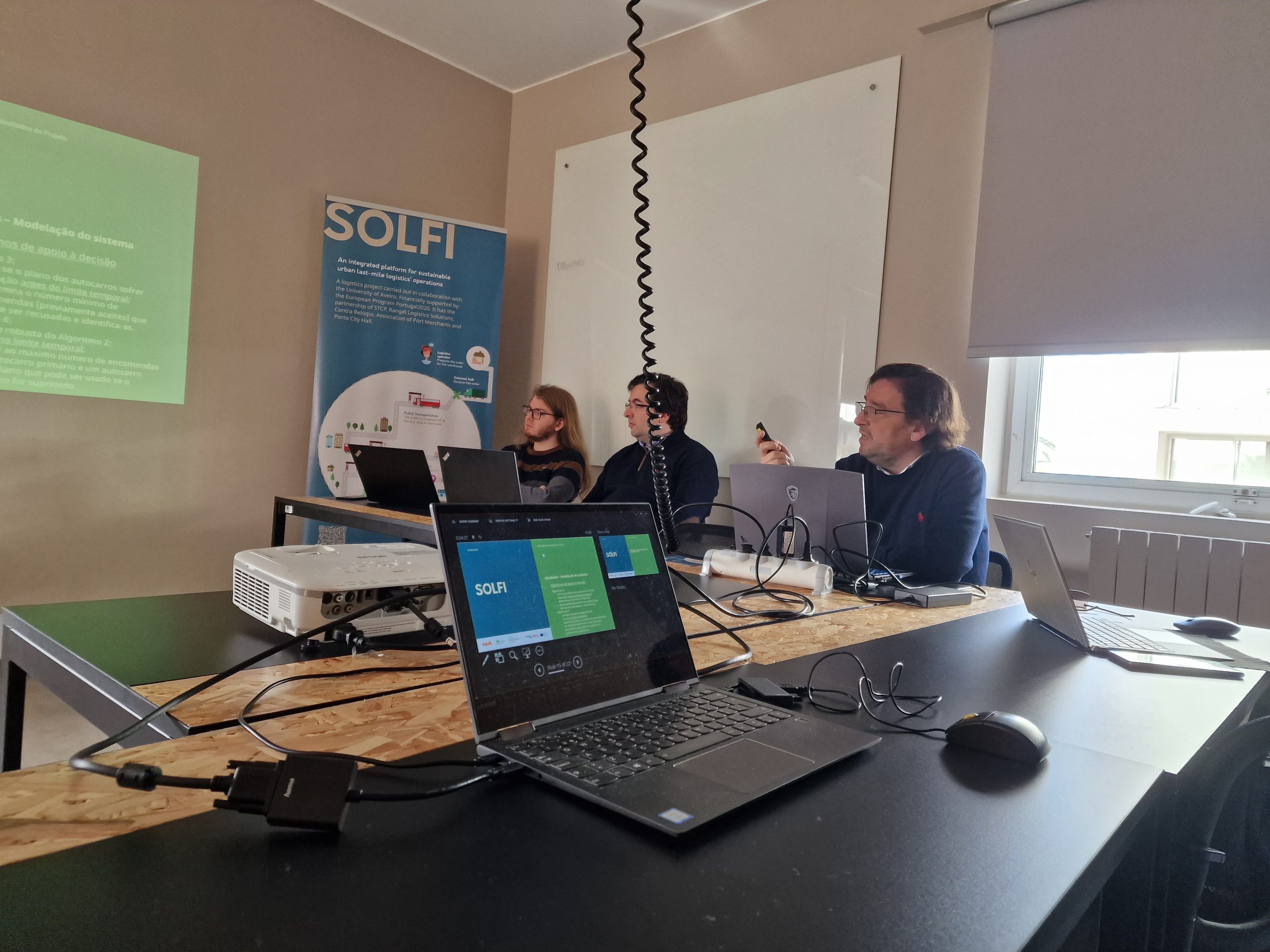 No âmbito do projeto SOLFI, um projeto de logística urbana para entrega de encomendas nos centros urbanos, otimizando o processo de distribuição e utilizando a rede de transporte de passageiros, realizou-se no passado dia 15 de dezembro um workshop de divulgação de resultados do projeto, no DGEIT-Universidade de Aveiro.